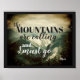 poster John Muir quote the mountains are calling and I must go on original vintage style nature photo art in moss green and gray. Original art and photography on posters by Ann Powell. Photography copyright Ann Powell all rights reserved.
