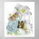 Die hübsche Gartenlandschaft - Posters & prints von Marilyn (Tidland) Strauß. Die Gartenszene besteht aus einer blauen Rose, OsterLilien, einem gemalten Damenschmetterling und einem Frack-Schmetterling. Der Hintergrund ist weiß, aber Sie können ihn beliebig farbig machen. Ein wunderschönes Geschenk für Naturliebhaber, Gärtner und mehr.