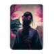 Computer Generd eines Geisha in einem Kirschblüten. Frau mit einer Zopffrisur und Blüten im Haar trägt. Japanisches Design im AI Stile. Im japanischen Gebäude.