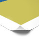 Poster met afbeelding van man en vrouw voor een huis en vogeltjes op het dak, kleur donkerblauw geelgroen