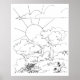Die Sonne wächst hinter den Bäumen am Hang. Kunst von M. Etchegaray-Szalan. Mit Filzstiften, Gel-Stiften, Farben, Stiften oder anderen Medien können Sie dieses Poster mit Ihrem eigenen künstlerischen Flair färben.