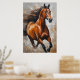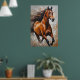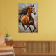 Ein HD-Portrait Ölmalerei Stil Poster illustriert ein braunes Pferd, das locker läuft und sein Haar im Wind fließt
