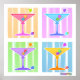 Four Fun, Colorful Pop Art Martinis gegen ein Retro, 50er Kunst Pastellfarben in einem klassischen Pop Art Quad. Nutzen Sie die Anpassungsfunktionen, um Ihren Einkauf mit eigenen Texten oder Fotos zu personalisieren!