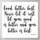 Poster zitiert St. Jerome über Selbstverbesserung. "Gut, besser am besten. Lass es nie Erholung. "Bis dein Gutes besser und dein Besseres am besten ist."