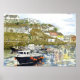 Im Hafen von Mevagissey befindet sich ein einheimisches Fischerboot, das sich mit roten Fechten abseits des Hafens vergnügt. Von Christines ursprünglicher Wasserfarbe. (Mehrere originelle Gemälde von Christine Mevagissey werden im Cofro Cornish Art Coffee House, 14 Fore St., Mevagissey verkauft)