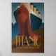 Art Deko Poster des berühmten Schiffes, das vom 10. April 1912 aus Southampton England auf ihrer Jungfernfahrt nach New York City segelte. Tragischerweise erreichte sie nie ihr Ziel, nachdem sie fünf Tage später einen Eisberg im Nordatlantik getroffen hatte, was zu einem Verlust von etwa 1.500 von schätzungsweise 2.224 Passagieren und Crew an Bord führte. Weitere Informationen unter https://en.wikipedia.org/wiki/Titanic