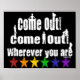 Komm raus, komm raus, wo immer du bist, lustige Gay & Lesbian Rainbow Pride Poster. Coole, trendy, Funny Gay & Lesbian Rechte Produkte. T - Shirt, Hüte, Aufkleber, Geschenke und vieles mehr. Auf der Suche nach Homosexuellen, Lesben, Homosexuellen, Gleichheit finden Sie es hier unter method77.com