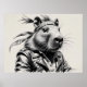 This image depicts a strikingly cool anthropomorphic capybara, styled like a rebel biker. The character sports a rugged leather jacket and a patterned bandana, exuding charisma, confidence, and a bit of a wild spirit.