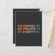 leider gibt es zu wenig witzige Karten - diese ist sehr gelungen. Druck okay - Schriftenauswahl und Bearbeitungsmöglichkeit sehr schnell und gut. Zazzle-logo könnte etwas kleiner sein.