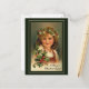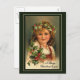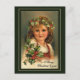Entworfen von Susan Epps Oliver. Ein wunderschönes Weihnachtsbild eines kleinen Mädchens in einem rot-weißen Kleid und mit einem heiligen Kranz im Haar.