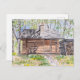 Aquarellmalerei auf einer Postkarte. Eine Holzsauna im Wald, im Frühjahr. Gemälde von Kristina Anderson