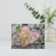 Postkarte mit nahem Foto einer Korallenglocke (heuchera) Blatt in Herzform.