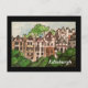 Attraktive, farbenfrohe Aquarellmalerei (auf einer Postkarte) des Ramsay Garden - die ikonischen Häuser neben dem Schloss Edinburgh. Es hat einen schwarzen Rand.