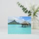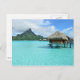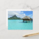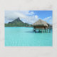 Postcard mit luxuriösem Bungalow-Resort in der klaren, blauen Lagune der pazifischen Insel Bora Bora, in der Nähe von Tahiti in Französisch-Polynesien. Siehe auch: