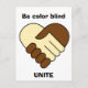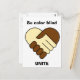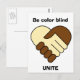 Ein schwarzer Mann und ein weißer Mann schütteln die Hände. Herzförmige Symbole oder Logos. Anti-Rassismus-Slogan auf der Postkarte