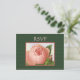 Benutzerdefinierte UAWG Postkarten mit einer einfachen rosa Rose und Rosenbud aus Vintagen botanischen Kunstwerken auf einem Imitat grünen Leinwand Hintergrund. Passen Sie es an, um Schriftart, Farben, Größen und mehr zu ändern, sogar Ihr Design für später retten.