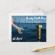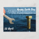 Erd-Tag-Postkarte mit Bolzen und Schraubenschlüssel auf blau selektive Farbe See Natur Einstellung.