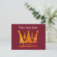 Goldene Krone auf roter Hintergrundepostkarte. Elegante Postkarte für verschiedene Anlässe. Fügen Sie Ihren eigenen Text hinzu.