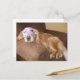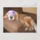Kennen Sie jemanden, der neu in Rente geht? Schicken Sie ihnen große GLÜCKWUNSCH! Diese Postkarte zeigt ein Foto eines niedlichen Golden Retriever Hundes, der auf einem braunen Stuhl schläft und eine lila Schlafmaske mit schwarzen Wimpern trägt. Im Text auf der Rückseite steht: "Glückwünsche für deinen Ruhestand!" Text ist vollständig anpassbar. Ändern Sie die Wörter, den Stil, die Größe des Schriftartes - oder entfernen Sie sie vollständig für eine leere Karte. Sie können sogar die vertikale Linie entfernen, wenn gewünscht.