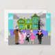 Diese Classic TV Monsters Postcard kann jeden Tag das Gefühl geben, Halloween zu sein. Das Retro, im Stil der 60er Jahre, minimalistisch, zeichnend Cartoon, verfügt über ein gotisches Herrenhaus, das gruselig genug ist, um Ihnen das Haar zu stellen. Wenn gute Zäune gute Nachbarn machen, dann müssen die Bewohner dieser Zuhause die besten Nachbarn des Blocks sein. Ein lila, steinernes und schwarzes, schmiedeeisernes Tor trennt die zweistöckige Zuhause mit der hellgrünen Farbe vom rollenden, grünen Rasen und weißen, beiderseits von Picketzäunen. Um diesen Rasen zu erhalten, braucht man keinen grünen Daumen. Die Landschaft besteht aus einem toten Baum mit sich ausbreitenden, schwarzen Ästen, die wie die gezackten Finger einer Hexe ausstrecken. Die untoten Bewohner, die dieses Haus verfolgen, sind vor und in der Mitte stehend. Wir sehen einen hulkenden Mann in einem braunen Anzug, der eine starke Ähnlichkeit mit Frankensteins Monster aufweist. Neben ihm, ist seine glamouröse, vampire Ehefrau in einem fließenden, rosa Kleid, das perfekt Set von ihrer blauen Haut und langen schwarzen Haaren mit weißem Streifen. Der Sohn des unwahrscheinlichen Paares kommt als Nächstes in dieser Familiengruppe. Junior mag jetzt ein junger Junge sein, aber er hat alle Zeichen eines vollwertigen Werwolfs. Hey! Wie haben ein Monster und ein Vampir einen Werwolf geboren? Das muss die Fernseh-Magie sein! Neben Junior sehen wir ein unglückliches Soul, das das grauenhafte Aussehen der Erholung der Familie nicht geerbt hat. Wie werden die Armen mit dieser stündlich gläsernen Figur, Porzellanhaut, blonden Haaren und stilvollem rosa Kleid überleben? Sie sollte sich besser in der Uni der Gemeinschaft einschreiben, wenn sie jemals hofft, einen Mann zu schnarchen! Diese Familieneinheit zu umrunden ist ein alternder Dracula in einem schwarzen Smoking und Schwänzen. Sein roter Kragen erinnert ihn an seine Lieblingsgetränke. Wenn der Himmel über dem Haus ein Hinweis ist, sieht es so aus, als ob das Leben für diese wunderbar beängstigenden Bewohner von hier aus nur ein grauer Himmel sein wird. Kaufen Sie dieses skurrile Design, während Sie die Chance haben. Wenn du das nicht tust, wird es dich bis zu deinem sterbenden Tag verfolgen - und darüber hinaus!