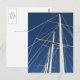 Auf dieser Postkarte befindet sich ein Foto der weißen Masten und das Riggen einer 4-Mastrinde, einem Segelschiff, gegen einen tiefblauen Himmel.
