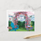 Ein wunderschöner Garten mit einem von Mandeville bedeckten Laub, der mit Schmetterlingen, Vögeln und Vogelbädern geschmückt ist.