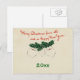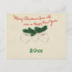 Ein Trio abnehmbarer Santa-Bärte hängt an einem kleinen Zweig. Nachricht: Frohe Weihnachten von allen und ein glückliches neues Jahr mit dem Jahr, das angepasst werden kann. Bild einer Illustration aus dem Inneren einer Weihnachtsgrüßkarte.