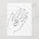 Hand offen, mit drei Juwelen. Die Sonnenstrahlen springen im Hintergrund auf. Farben Sie dieses Objekt selbst mit Filzspitze oder Gel Stiften, Stiften oder anderen Medien, Sie können diese Postkarte mit Ihrem eigenen künstlerischen Stil färben. Oder lass dem Karteninhaber die Farbgebung. Dies ist eine Illustration aus "Dragon Tars Coloring Book" von M. Etchegaray-Szalan.