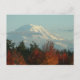 In diesem Herbstgebirge des Rainiers, das 400 m über dem Puget Sound liegt, etwa 1 km südöstlich von Seattle, WA, zeigt der Berg seine Herbstfarben. Dunkelgrüne immergrüne Bäume verbinden die schönen roten und goldblättrigen Laubbäume, die im Vordergrund tanzen und sich in einen kräftigen Wind biegen. Auf dem Gipfel bläst eine rauche Wolke und der Fuß des Berges bläst ein hellblauer Himmel. Wenn Sie genau hinschauen, können Sie sehen, wie ein paar schwarze Vögel um den mittleren bis unteren rechten Teil des Fotos geworfen werden. Copyright Gail Storrs 2007.