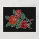 Hibiskus blüht. Rote Blume mit grünen Blätter (beige Bildteile, die einen strukturierten Look geben) auf schwarzem Hintergrund. Hibiskus-Bild von Susan Lilly aus original Seidenmalerei.