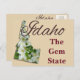 Große Städte und ihre Lichter sind in Idaho nicht wirklich ein Problem, sodass die Nacht einen helleren und schöneren Sternenhimmel bringt als an den meisten Orten. Idaho ist ein idealer Ausgangspunkt für Liebe-Abenteuer im Freien, vom Skifahren bis zum Angeln und Rafting. Es ist auch ein großartiger Ort zu gehen, wenn Sie ruhige Möglichkeiten bevorzugen, Gold oder Edelsteine zu finden. In Idaho gibt es zahlreiche Orte, wo man Gold, Granat, Opal, Jade, Topaz, Turmalin und viele andere Edelsteine und Mineralien sammeln kann. Das wäre natürlich der Grund, warum es Spitzname ist "The Gem Staat". Wie Sie vielleicht wissen, ist Idaho der größte Kartoffelproduzent in der Nation. Aber Idaho trägt viel mehr als nur Kartoffeln: Milch, Rinder, Heu, Weizen, Zuckerrüben, Gerste, trockene Bohnen, Mais, Zwiebeln, Hopfen, Linsen. . . Sie gehören zu den zehn größten Produktionsstandorten für fast 30 der produzierten Rohstoffe. In Idaho gibt es sogar drei anerkannte Weinbaugebiete. Das Staat-Gemüse, wie Sie vermuten können, ist die Kartoffel. Das Staat ist das Appaloosa und der Staat ist die Cutthroat-Trout. Phantastisch 63% Idaho ist ein öffentliches Land, das besonders beeindruckend ist, da Idaho der 13. größte Staat in den Vereinigten Staaten ist. Dieses wunderbare Design würdigt unseren phantastischen 43. Staat. Die Kontur des Staat ist mit der Blume des Staat, der Mockorange (Blüte) gefüllt. Ein Nicken auf ihren fruchtbaren Boden, ein tiefbraunes für "Idaho" auf einem weichen "russet" (Kartoffelpun beabsichtigt) Hintergrund mit einem "garnet" roten "The Gem Staat". Diese wunderbaren Postkarten können vor Ihrem Urlaub gekauft werden, damit Sie keine Zeit verlieren, nach ihnen zu suchen und sich auf die Schönheit um Sie herum konzentrieren können. Pair mit den passenden Porto-Briefmarke für noch beeindruckendere Präsentationen.