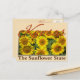 Kansas ist nach dem amerikanischen Ureinwohnerstamm Kansa benannt, der das Gebiet ursprünglich bewohnte. Obwohl der offizielle Spitzname "Der Sonnenblumen-Staat" ist, nennt man Kansas auch "Der freie Staat" und "Der Staat der Weizen". Im Jahr 2015 war Kansas einer der produktivsten landwirtschaftlichen Staaten des Landes und produzierte hohe Erträge an Weizen, Mais, Sorghum und Sojabohnen. Der bekannteste literarische Auftritt des Staat war die Zuhause von Dorothy Gale, der Hauptfigur des Romans "Der wunderbare Zauberer von Oz". Als Dorothy sagte: "Es gibt keinen Ort wie Zuhause", bezog sie sich auf Kansas. Laura Ingalls Wilders "Little House on the Prairie", erschienen 1935, ist eine weitere bekannte Geschichte über Kansas. Sogar Superman soll aus Kansas kommen. . . von der fiktiven Stadt Smallville. Die Pizza Hut Restaurants eröffneten ihren ersten Standort in Wichita, Kansas. Die prächtige Sonnenblume ist die Blume des offiziellen Staat, und sie ist genauso eine Pflanze wie ein Ziertier. Sonnenblumen sind auf dem amerikanischen Kontinent heimisch. Historisch wurden sie für Medizin, Färbung, Nahrung und Öl verwendet. In der Bühne der Bude zeigen Sonnenblumen ein einzigartiges Merkmal, das Heliotropismus genannt wird, mit dem der Kopf der Sonnenblume den ganzen Tag über der Sonne gegenübersteht, beginnend mit dem Tag nach Osten und endet nach Westen. Nicht alle Sonnenblumenblätter sind gelb. Es gibt mehr als 60 verschiedene Arten von Sonnenblumen, die auf der ganzen Welt leben - einige dieser Sorten haben gestreifte Blütenblätter. Einige Sonnenblumen haben auch verschiedene Innenfarben. Dieses spektakuläre Design würdigt unseren schönen 34. Staat sowie die phantastische Blume, die er ehrt. Eine Kontur des Staat ist voll von schönen Sonnenblumen. Das Ganze wird mit der Kürbisorange "Kansas" gepaart und, mit einem Nicken an den fruchtbaren Boden, mit einem tiefen, erdigen "Sonnenblumen-Staat" verankert. Diese wunderbaren Postkarten können vor Ihrem Urlaub gekauft werden, damit Sie keine Zeit verlieren, nach ihnen zu suchen und sich auf die Schönheit um Sie herum konzentrieren können. Pair mit den passenden Porto-Briefmarke für noch beeindruckendere Präsentationen.