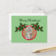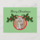 Katze im roten Kreisrahmen, bedeckt mit heiligen Ästen. Das Bild sitzt unter dem Text "Frohe Weihnachten" auf hellgrünem Hintergrund. Personalisieren Sie mit Ihrem Foto.