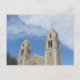 Glockentürme St. Vincent de Paul, römisch-katholische Kirche in Petaluma, Kalifornien. Blauer Himmel mit weich bewachsenen Wolken, Beige- und Bräunungsfarben prägen die architektonischen Details.