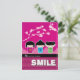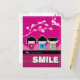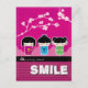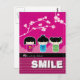 Niedliche und farbenfrohe Postkarte, mit Kokeshi (japanische Puppen) auf rosa Hintergrund und Kirsche-Blume