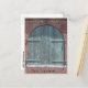 Gewitterte Gewölbe Lagertür in roten Ziegelsteinen Gebäude. Text vor der Karte "New Location ...". Personalisieren Sie auf der Rückseite den Firmennamen, die Adresse und die Telefonnummer.