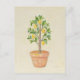 Hübscher kleiner Meyer-Zitronenbaum, der in einem Terrakottakessel wächst, auf dieser Postkarte.