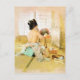 Schicken Sie Ihre künstlerische Postkarte mit einem Gemälde der Meister der Geschichte. Klassisches Gemälde "Geisha at Her Toilet" des großartigen Künstlers Robert Frederick Blum. Amerikanische Malerin, die 1857-1903 lebte, während es unbekannt ist, wann dieses Stück gemalt wurde.