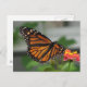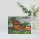 Foto eines wunderschönen Monarchschmetterlings, der zu einer Lantana-Blume flitzt.