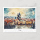 Postkarte mit Prager Dämmerung, landschaftliche mittelalterliche Stadt in Böhmen, Tschechische Republik.
