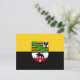 Postkarte mit variantenreicher Flagge Sachsen-Anhalts; Design mit zwei waagerechten gelben (goldenen) und schwarzen Bändern und mit dem Wappen des Staat in der Mitte