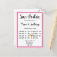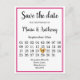 Personalisieren Sie diese Save the Date Postkarten mit Ihrem Namen und Ihrer Position, indem Sie den Abschnitt "Personalisieren Sie diese Vorlage" verwenden. Um Ihr eigenes Datum zu wählen, klicken Sie auf "Weiter anpassen", fügen Sie das Kalenderdatum hinzu, verschieben Sie das Herz auf das gewünschte Datum. Sie können auch die Farbe des Hintergrunds, des Wortes und des Herzens nach Ihrem Farbschema ändern. Auf der Rückseite der Karte ist Platz, um weitere Informationen hinzuzufügen. Der letzte Gedanke ist, den Namen und die Adresse der Karte hinzuzufügen wird.
