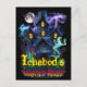 Eine Spuk Hausszene mit Gespenstern, Vollmond und einer lustigen Halloween-Nachtszene. Das illustrierte Design zeichnet sich durch lebhafte Blues- und Purpurfarben aus. Das "SPUK HAUS" ist rot und gelb auf der Unterseite des Designs bedruckt.