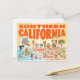 Helle und charmante Szene - ein lustiger Cartoon-Kartenblick auf Südkalifornien - bezaubernde Persönlichkeiten genießen die warme kalifornische Sonne mit Los Angeles, San Diego, Anaheim, Palm Springs - Anza Borrego Desert Staat Park und Joshua Tree National Park sind ebenso zu sehen wie die Grenzstädte Tijuana, Tecate und Mexicali in Mexiko in Mexiko.