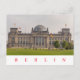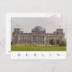 Auf einer Postkarte druckt sich ein herrlicher Ausblick auf das Reichstag-Gebäude und seine Glaskuppel in Berlin.