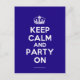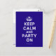 Basierend auf dem ursprünglichen Behalt Calm und ... poster dieser Creme und blau Behalten Calm und Party On Postcard verfügt über einen speziell entworfenen Schriftart, das dem Original genau entspricht.