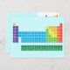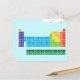 Postkarte mit Periodensystem der Elemente, wobei jede Elementgruppe in Regenbogenfarben markiert ist.
