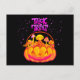 Es ist das Halloween-Party-Design, das das kommende Halloween feiert. Diese handgezeichnet Kawaii- und lustige Illustration zeigt Happy Halloween, Kürbispilze und Trick oder Leckerbissen.