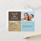 Postkarten aus blau und braun Save the Date Foto mit der Wahl, 1 oder 2 Fotos hinzuzufügen. Verlass im unteren Foto des Herzens im Sand für eine Hochzeit zum Thema Strand. Chic braune und blaue Farbblockdesign mit einer leicht zu bedienenden Vorlage - fügen Sie einfach die Namen der Braut & Bräuche hinzu, zusammen mit dem Hochzeitstermin in den zur Verfügung stehenden Raum.