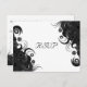 © Sunny Mars Designs - Blumenmuster Hibiskus: Black on White Wedding RSVP Post Cards - Trendy, stilvoll, modern, elegant, elegant, elegant, chic anpassbar Gothic Hochzeit RSVP Antwortkarten mit schönen, wunderschönen Goth Wirblen blumengeschmückten tropischen Hibiskus Design.